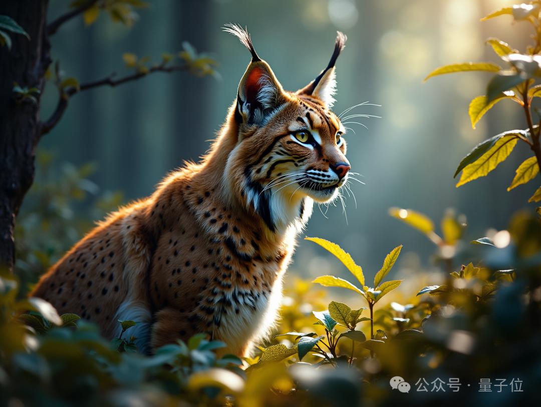 第五关,动物形象生成。 提示词:森林里的一只山猫,由专业摄影在强光下拍摄。