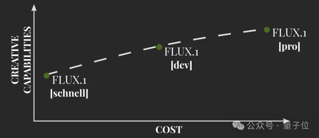 FLUX.1系列模型 此次,黑森林共发了FLUX.1系列的3个模型:pro、dev、schnell。