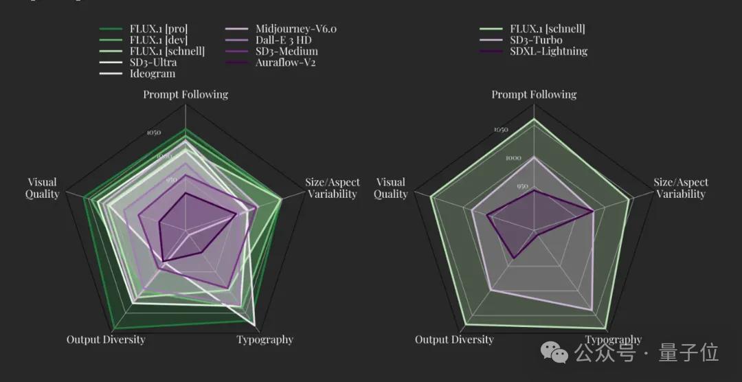 黑森林称,所有FLUX.1模型都基于多模态和并行扩散Transformer块的混合架构,并扩展到12B参数。 3款模型中,FLUX.1 [pro] 和 [dev] 在视觉质量、提示响应度、尺寸/长宽高比列灵活性、排版和输出多样性这些方面,超过了Midjourney v6.0、DALL·E 3 (HD) 和 Stable Diffusion 3-Ultra。 而FLUX.1 [schnell] ,被团队称为“迄今为止最先进的少步骤模型(few-step model)”。 它不仅在同类竞争对手中脱颖而出,还超越了更强大的非压缩模型,如Midjourney v6.0和DALL·E 3 (HD)。 整个FLUX.1系列都经过了专门的微调,以求保留预训练阶段的全部输出多样性。 与已有的技术相比,FLUX.1还有以下优势: