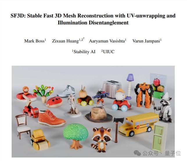 One More Thing 好巧不巧,同一天,Stability AI也有新动作: 推出新的AI模型Stable Fast 3D,官方称它可以在半秒内生成3D图像。 此前的模型需要数分钟才能生成类似效果的3D图像,新模型完成相同任务的速度是现有的1200倍。