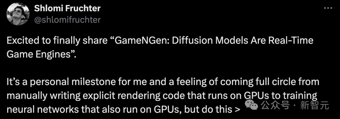 核心作者:个人里程碑 谷歌DeepMind核心贡献者,项目负责人Shlomi Fruchter,在社交媒体上,介绍了自己开发GameNGen的过程。