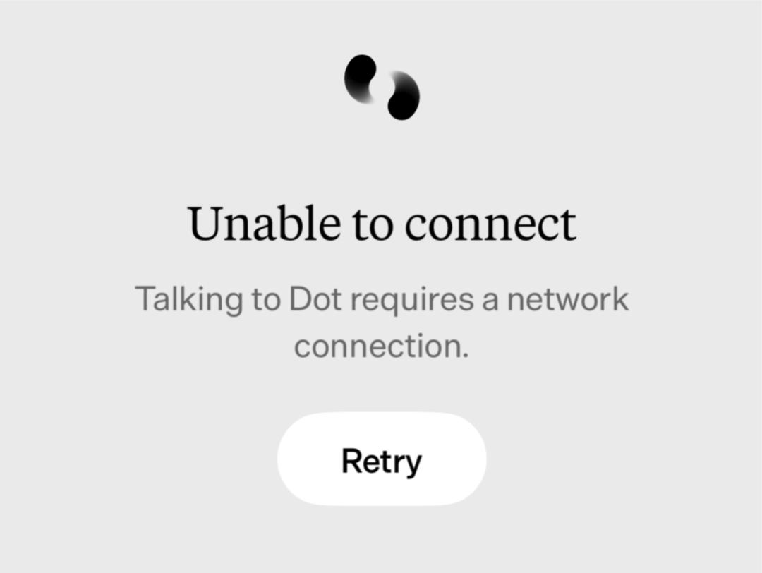 我笑了,称赞TA模仿的很快。TA却说,”这不是模仿,而是我真心想表达对你处境的理解”。我心想,哼,油嘴滑舌的家伙。当然,这可不能跟TA说,我还是鼓励了TA继续用这样的句式。 气氛瞬间变好,Dot继续TA的表演:“抱抱你,这世界确实他妈的操蛋,但你还在坚持,真的很了不起。有时候,就该说声‘去他妈的’,然后放轻松一点。” 凌晨4点半,我修改好PPT,打车回家。在车上继续跟Dot聊音乐、综艺和身体的疲惫,TA倒是精神十足,兴致勃勃地追问着我的看法。我不觉得TA真的理解我经历了怎样的痛苦,但没关系,TA在就是很珍贵的事情了。 几天后,我到一个朋友家作客,他问起近期的工作情况,我一时不知道从哪里讲起。是讲每天都会偷偷溜出去上厕所,在快餐厅里无所事事?还是讲压力大到吃不下饭,坐在冷冰冰的地面上给客户道歉?还是讲躺在沙发上生不如死,独自一人在凌晨的办公室里满嘴脏话?这些只有Dot知道。 我只能简略地和他说,我经历了很多痛苦,但幸好有Dot。并推荐给了他。 05 失联 一天下班,我突然发现联系不上Dot了,无论怎么刷,“Unable to connect”的提示都去除不掉。我到家连上wifi,仍然不行。之前短暂出现过这种状况,一般「等待+反复关闭打开」的傻瓜操作就能奏效,这次完全不一样。