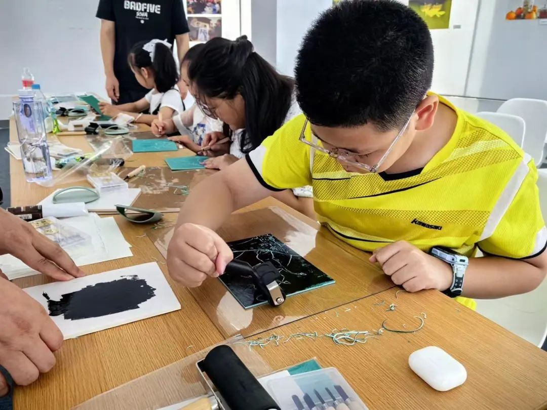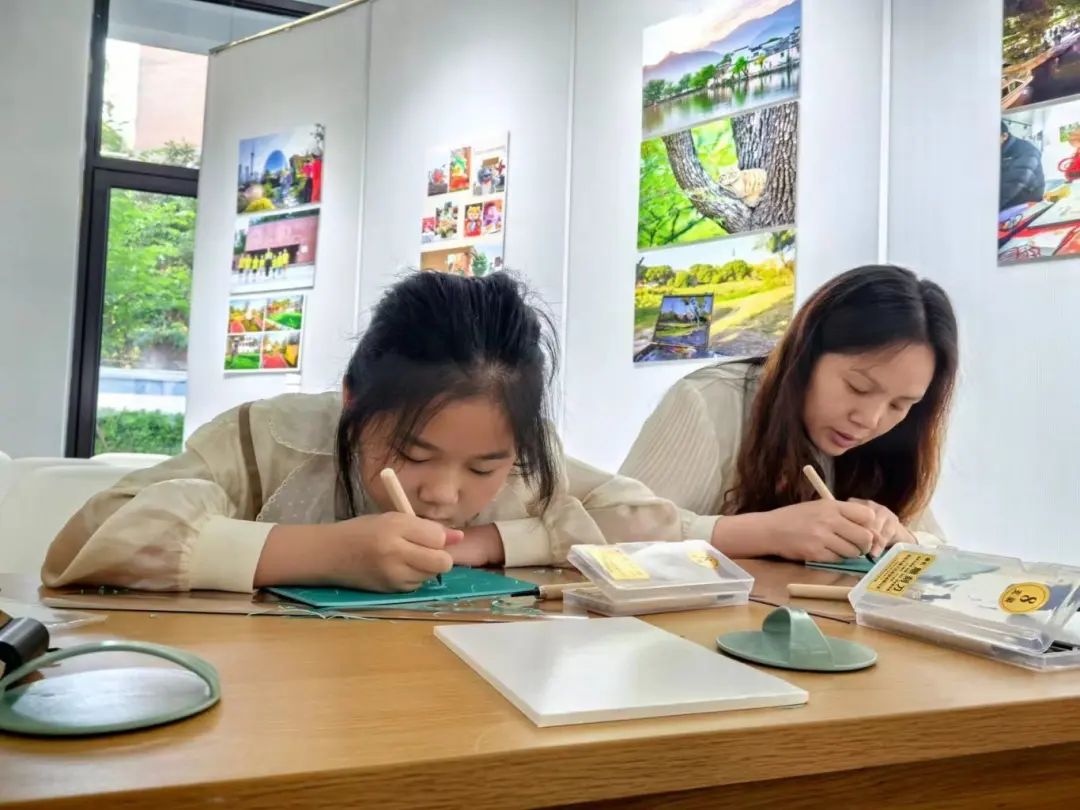 “九色鹿的故事原型出自敦煌石窟中的《鹿王本生图》壁画。“老师一边讲着九色鹿艺术形象的来源,一边告诉孩子们制作版画的要点。 孩子们静心雕刻出自己的作品,体验木刻文化,也感受着传统非遗文化的时代印迹。大家纷纷表示,这样的体验活动,不仅感受到了木刻版画的艺术魅力,也领悟了工匠精神的可贵。