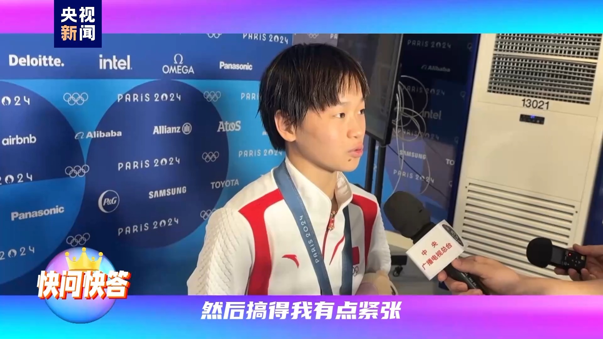 全红婵:第二跳可能就是看台上面声音太大了,然后我有点紧张。 03 第五跳跳完看到分数你一下子就哭出来了,当时是什么样的心情? 全红婵:我觉很开心,然后在这三年里面也很辛苦,拿这枚金牌也是很不容易,然后我就绷不住了,教练也绷不住了。 04 拿金牌的感受是? 全红婵:很开心,也很不可思议能拿到这个金牌。我很开心是为中国队拿了这枚金牌。 05 你的哥哥也在现场,有什么话想对家人说?