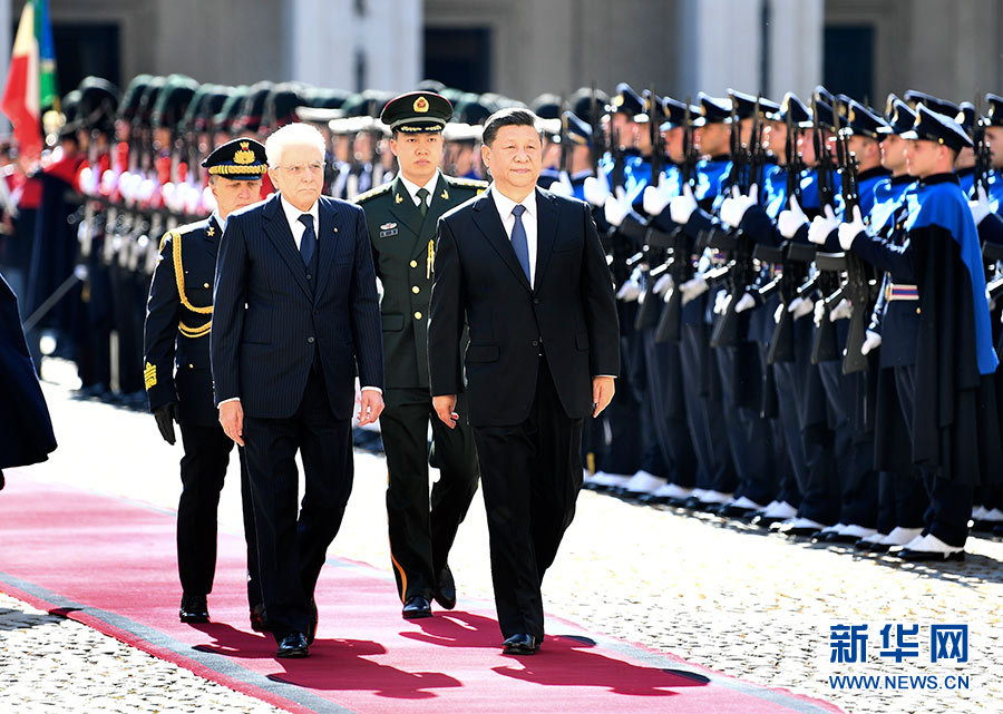 3月22日,国家主席习近平在罗马同意大利总统马塔雷拉举行会谈。会谈前,马塔雷拉总统为习近平举行隆重欢迎仪式。 新华社记者 谢环驰 摄