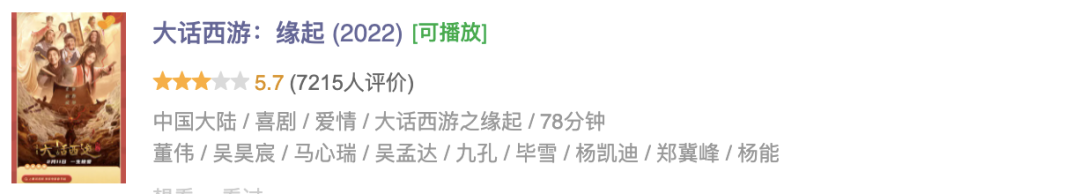 一段至今没有答案的往事: 20年前周星驰应邀到北大做演讲。 整个演讲厅坐满迷弟迷妹,活动尾声,一位学生请求他现场重现《大话西游》的“爱你一万年”。 周星驰有些诧异,有些不好意思: 现在?这里? 学生继续起哄,没办法,星爷清了清嗓子,定了定神。 所有人肃静,等他开口: “曾经有一段真挚的爱情,放在我面前,但我没有珍惜……” 说到一半。 周星驰闭上嘴,低下头,笑了。 他在笑什么? 有人说他入戏太深,是敬畏;有人说他自我代入,是遗憾;有人说这只是周星驰第一次走进内地校园,有点社恐…… 没人确切知道那瞬间周星驰在想什么。 但对于影迷,这是一个极具代表性的缩影—— 提起《大话西游》。 戏里戏外,在那个互联网并不发达的时代,实在留下太多供人遐想的“神秘感”。 传说依然流传江湖: 周星驰与朱茵的分道扬镳; 刘镇伟临时的删减与调整; 上映后票房低于预期(并非像许多媒体渲染的“惨败”),被贬为“文化垃圾”,之后经过校园传播又在口碑上神奇逆转,奉为经典…… 乃至今天。 这种神秘的戏剧性,再添一笔—— 达叔“遗作”。 《大话西游:缘起》,一部5.7分的网络电影,因为达叔的去世而被关注。 固然不是多么神奇的命运轮回。 众所周知,达叔生前最后几年一直身体抱恙,还因此婉拒过《美人鱼》的邀约,后来《流浪地球》也只是咬牙坚持。 《缘起》并非计划中的“离别”,更多是恰巧碰上的意外。 不止吴孟达。 《缘起》里还有许多你熟悉的老面孔—— 暴发户“郑总”郑冀峰,台综谐星“九孔”吕孔维,街边卖武功秘籍的“算命大师”袁祥仁…… 他们不断试图勾起你的“情怀”。 但Sir看到的,却是一种更广泛的消逝 。 《大话西游》。 一副收集爱情奥秘的“月光锦盒”,是怎么变成现在,让国产电影原地打转的紧箍之咒。 开门见山。 无论在“网络电影”,还是“炒冷饭”的范畴里。 《缘起》绝不算敷衍。 就说几点Sir觉得意外的: 故事有翻新。 背景不变:至尊宝(孙悟空)在踏上取经路前,跟紫霞仙子的几世绝恋。 变在身份—— 至尊宝不再是山大王,而是一名平凡生意人。 吴孟达不再是至尊宝的二当家,成了他爸爸。 二人在边陲小镇上经营自家面馆。 还有两位主角的关系。 紫霞&至尊宝。 开篇就有“异常”—— 怎么确定至尊宝就是紫霞“意中人”? 拔剑。 这一次,至尊宝并没有成功拔出她的紫青宝剑。 怎么?至尊宝不是齐天大圣? 这意味着两人关系和动机作出细微调整: 至尊宝想主动证明自己的身份。 而紫霞则是被动地接受至尊宝的“平凡”。 其次。 选角有诚意。 必须先给予达叔最大尊敬。 全程没有任何包袱,仍然勤勤恳恳地延续着港式无厘头表演。 然后是跟他搭档的年轻演员—— 终于抛开了网络电影廉价的“网红审美”。 △ 男主角吴昊宸,女主角马心瑞 不说能“超越经典”,至少演技及格,气质自然,就连最难超越的“紫霞”,豆瓣剧照下的评价都一反“常态”,竟然没人骂。 Sir就说出场一幕: 镇上的豪绅抛花球招亲,老爸推着儿子去抢。 眼看花球就要落在至尊宝手里? 说时迟那时快。 一抹红色倩影从天而降,斩断花球…… 微尘散开,仙女下凡。 不说惊艳,至少对于本不抱太大期待的Sir来说小有惊喜。 制作不拉胯。 当然多亏同行衬托—— 半掩的情欲,猎奇的场面,不算五毛的特效…… 能看出来钱花在刀刃上。 要说拿来消磨时间,或者缅怀前辈,Sir平心而论可以一看。 前提是—— 请忘掉“大话西游”四个字。 《缘起》最可惜之处—— 它选择顶着《大话西游》的头衔。 我们为什么喜欢《大话西游》? 还是那个词: 神秘感。 虽然它是一个戏说、“魔改”的神话故事,但它却结结实实地道尽了爱情中的痴缠、甜美与痛苦,道尽了爱的不讲道理、不可捉摸以及求而不得。 当你拥有她,你没有拥抱她; 当你想拥抱她,你却再也不能拥有她; 当你终于放下执念,她又站城楼上,远远注视着你,心不在焉…… 我们为什么一次又一次地看《大话西游》。 你要看的是至尊宝和紫霞两个虚构人物的爱情悲剧吗? 不。 是你自己,曾经的你,现在的你,以及想象中未来的你。 三者互相交织、催化、再吐露出爱情的真相。 要翻拍/续拍《大话西游》,关键在于你能不能续上这个核,甚至更新它、超越它。 遗憾的是,这些后来之作,在Sir看来都没有做到。 从院线到网络。 评分从雷打不动的9分降到5分、4分、3分……(还是在把各路乱蹭IP的牛鬼蛇神排除在外的前提下)。 暂且抛开分数、票房、播放量不论。 续作和原版的差距究竟在哪? 首先,诛心地讲。 从海报上,你就能一眼看出,这些作品就顾着盘剥老版《大话西游》的剩余价值,没把心思放在推陈出新拍出更好的作品上。 角色不外乎:至尊宝、紫霞、唐三藏、牛魔王。 道具元素基本都是:金箍、金箍棒、金甲圣衣、月光宝盒。 作为购置了改编权的续作,使用这些元素当然无可厚非。 关键看怎么用。 不止如此,这些作品自以为可以不顾故事内核,搬用几个场景、几句台词、主题曲,所呈现给观众的就是所谓的《大话西游》。 例如《大话西游之爱你一万年》,一开场就是名场面和经典台词。 老版中,故事推进到高潮处,周星驰是这么说的: 《一万年》里,黄子韬出演的至尊宝是这么说的: 但很多创作者大概没看懂,或者是忘了。 ——“一万年”是“谎言”。 是周星驰版至尊宝在跟紫霞告白时撒